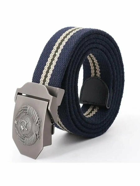 Текстильный ремень с пряжкой СССР NIT Perfect Goods Время путешествовать в прошлое с помощью ремня СССР! Этот уникальный аксессуар привнесет в ваш стиль неповторимую нотку ретро и немного ностальгии по временам Советского Союза. Особенности: 1) Приятная ностальгия Приобретая ремень с пряжкой СССР, вы не только получаете стильный аксессуар для повседневного использования, но и возможность ощутить приятную ностальгию. Этот ремень станет отличным подарком для вас или ваших близких и наполнит их положительными эмоциями. 2) Уникальная пряжка Особенность ремня - его уникальная пряжка, изготовленная из прочного металла. Размеры пряжки 7х5 см, а ее вес составляет 78 грамм. На пряжке изображен герб СССР, который включает земной шар, серп и молот, солнце и колосья. Дополнительно, на гербе есть надпись - лозунг Карла Маркса и Фридриха Энгельса: «Пролетарии всех стран, соединяйтесь!» 3) Крепкое полотно Сам ремень изготовлен из плотного материала - холста. Он очень прочный и практически невозможно порвать. Его размеры составляют 140х3.8 см, а вес - 135 грамм. Благодаря своей лаконичной расцветке, ремень будет смотреться хорошо как с джинсами, так и с классическими брюками. 4) Качественное крепление Крепление ремня осуществляется с помощью зажима. Пряжка плотно крепится на полотно благодаря крепким зубчикам на корпусе. Это гарантирует, что ремень будет надежно держаться и не раздражать своего владельца. 5) Разнообразие цветов Ремень с пряжкой СССР доступен в разнообразии цветов. Вы сможете выбрать из 12 вариантов: белый, красный, темно-синий, темно-коричневый, хаки, черный, синий с бежевым, зеленый с бежевым, коричневый с бежевым, темно-синий с бежевым, черный с бежевым, черный с серым. Таким образом, у каждого будет возможность найти ремень, который идеально подойдет под его предпочтения и гардероб. Погрузитесь в эпоху прошлого, ощутите дух Советского Союза и добавьте нотку ретро в свой стиль с мужским текстильным ремнем с пряжкой СССР!