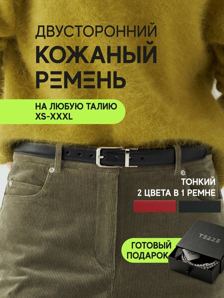 Двухсторонний женский ремень TEZZE: стиль и комфорт Этот тонкий ремень выполнен из прочной натуральной кожи, что гарантирует его долговечность и безупречный внешний вид. Металлическая пряжка с лаконичным дизайном и аккуратные отверстия обеспечивают удобство использования и легкую подгонку ремня по длине. Ремень поставляется в подарочной упаковке, что делает его отличным вариантом для подарка. Уход за ремнем прост: протирайте его сухой тканью, не мочите и не сушите у отопительных приборов. Выбирая двухсторонний женский ремень TEZZE, вы получаете стильный аксессуар, который станет незаменимым элементом вашего гардероба и подчеркнет ваш безупречный вкус.