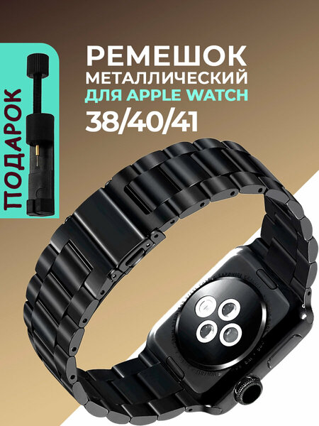 Ремешок для Apple Watch 38 40 41 мм: стильный и надежный аксессуар Совместимость с Apple Watch 1 2 3 4 5 6 7 SE 8 9 Массивный браслет из нержавеющей стали с крупными цельнометаллическими звеньями обеспечивает солидный вид и комфорт при носке. Скрытая раскладная застежка Клипса-автомат легко и без усилий расстегивается нажатием на две боковые кнопки, а застегивается так же как обычная клипса – нажатием с последующим щелчком. Ремешок укорачивается путем снятия звеньев, которые обозначены стрелками, – по 3 штуки с каждой стороны. Штифты удаляются только в одну сторону. Материал и цвет Ремешок изготовлен из нержавеющей стали, имеет черный цвет и подходит для запястий размером от 150 до 200 мм. Упаковка и бренд Каждый браслет упакован в индивидуальную брендированную коробку, что делает его отличным подарком на любой праздник – мужской и женский.