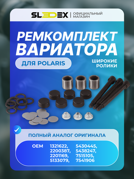 Ремкомплект вариатора (широкие ролики) Sledex для Polaris — это надежное и экономически выгодное решение для обслуживания и ремонта вариатора вашего снегохода. Деталь является полным аналогом оригинальных комплектующих для вариаторов серии P85, что гарантирует идеальную совместимость и простоту установки.