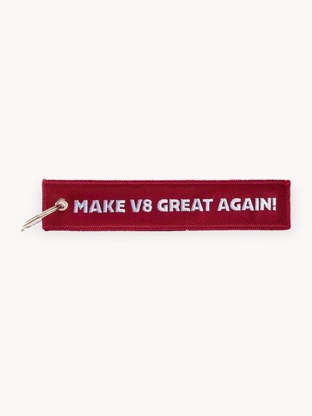 Нашу ремувку не нужно отрывать перед полетом. Пусть она всегда будет с вами: на ключах от тачки или на любимом рюкзаке. Ведь фраза на ней — стиль жизни, который мы выбрали. Быть преданным V8, чувствовать мурашки от мурчания под капотом и не стесняться, когда рядом проезжают электрички. С вами всё хорошо. Как и с этой красной ремувкой Make V8 Great Again!