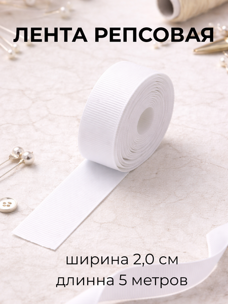 Репсовая лента для шитья и рукоделия, плотная, матовая ширина 2,0 см, длина 5 метров