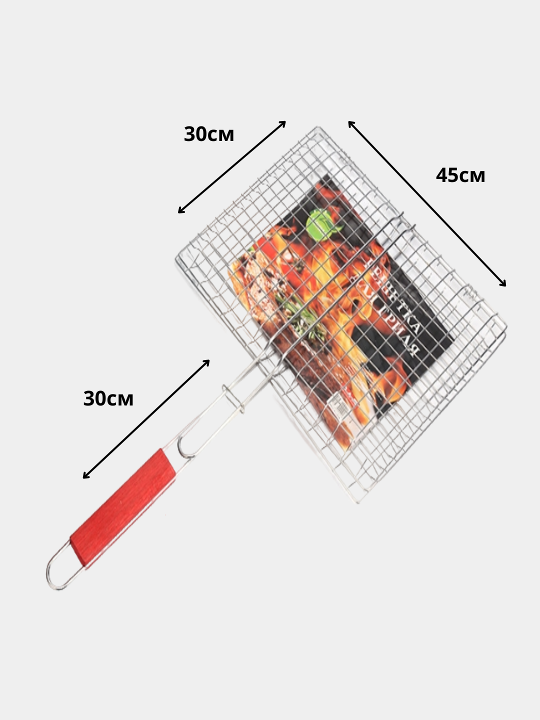 Решетка для барбекю, выполненная из хромированной стали, поможет легко приготовить вкуснейшие блюда на открытом огне. Удобная деревянная ручка не нагревается при использовании и не скользит в руках. Благодаря тому, что решетка переворачивает все содержимое одним движением, значительно экономится время при готовке. Удобный зажим прочно закрепит продукты на решетке, будь то мясо, овощи или рыба. Легко моется и нетребовательна в уходе.