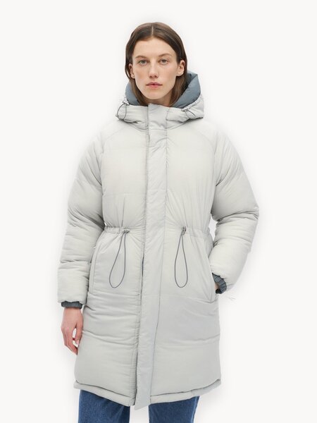 Зимняя двусторонняя куртка с утеплителем DuPont™ Sorona®. Одна сторона выполнена из непромокаемой мембранной ткани, другая – из нейлона. Модель с двумя прорезными карманами с обеих сторон и кулиской на одной из сторон. Температурный режим до –20°C. Рост модели — 176, размер — М.