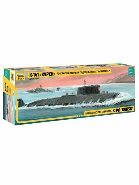 Масштаб 1:350 Детали х 44 Размер, см 44,5 Клей и краска в комплект модели не входят Сборная модель - Российский атомный подводный ракетный крейсер К-141 «Курск». Историческая справка: Построен по проекту «949А» и предназначен для уничтожения авианосных и ракетных группировок вероятного противника. Введен в строй в состав Северного флота 20 января 1995 года. Основное вооружение: - 24 пусковых установки со сверхзвуковыми крылатыми ракетами ЗМ-45 комплекса П-700 «Гранит» (ракеты могут нести как фугасный (700 кг) так и ядерный боезаряд (500кг)); - шесть носовых торпедных аппаратов, из них два 650 мм и четыре 533 мм (общий запас торпед -18). Наибольшая длина -154,8 м. Ширина -18 м. Высота (от киля до верха ограждения рубки) -18,3 м (высота б-ти этажного дома). Экипаж - 130 человек. Трагически погиб 12 августа 2000 года. Набор деталей из пластмассы для сборки одной модели подводной лодки. Модель собирается при помощи специального клея, выпускаемого предприятием «Звезда». Краски продаются отдельно от набора. Состав набора: отливки инструкция по сборке декаль