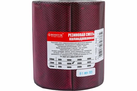 Сырая резина предназначена для ремонта камер и шин “горячим” способом. Универсальные свойства резины позволяют использовать ее как при ремонте твердой протекторной, так и эластичной боковой зоны шины. Высокая пластичность сырой резины позволяет применять ее для декоративного ремонта наружной поверхности шины и улучшения внешнего вида места ремонта. Время вулканизации 4 мин. на 1 мм толщины сырой резины на прогретом вулканизаторе (135ºС) под давлением не менее 3 Атм. Если при вулканизации резины давление недостаточно, то резина получается пористой. Сырая резина применяется вместе с термоклеем ROSSVIK. Тип: резиновая смесь. Толщина: 1.3 мм. Ширина: 120 мм. Время вулканизации, мин/мм: 4. Количество: 1 шт. Габариты без упаковки: 5700х120х1.3 мм.