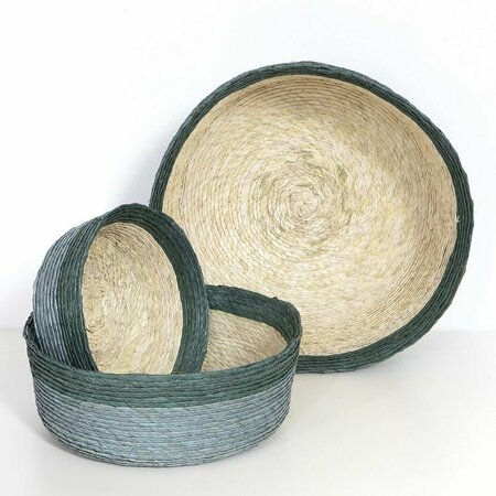 Набор двухцветных корзин Round от мексиканского бренда Makaua, в комплект входят три изделия размеров S, M и L. Цветовое решение — Eucalipto. Небольшие корзины отлично подойдут для хранения мелочей, сервировки блюд или фруктов. Изготовлено вручную в Мексике. S — Ø 15 x H5 см M — Ø 20 x H7 см L — Ø 25 x H9 см