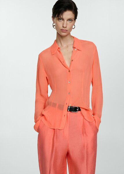 Рубашка MANGO из категории блуз и рубашек представлена в ярком оранжевом цвете. Доступна в размере 20, эта модель сочетает в себе стиль и комфорт. Полупрозрачная ткань и пуговицы на рубашке добавляют изысканности и особого шарма.