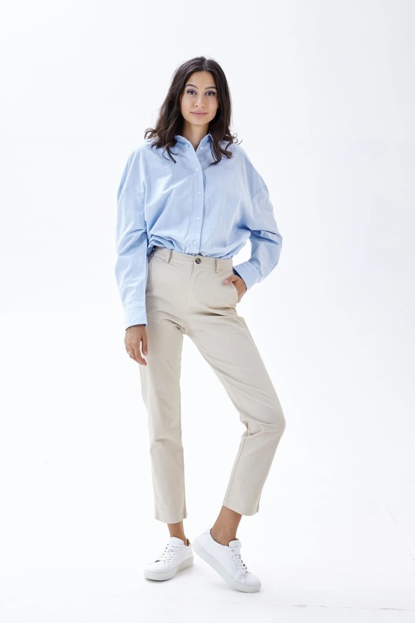 Удлиненная рубашка свободного кроя со спущенной линией плеча. Выполнена из натурального воздухопроницаемого и легкого материала, хорошо держит форму и обеспечивает комфорт в течение всего дня. Универсальный и комфортный вариант для создания офисного, школьного или повседневного образа.