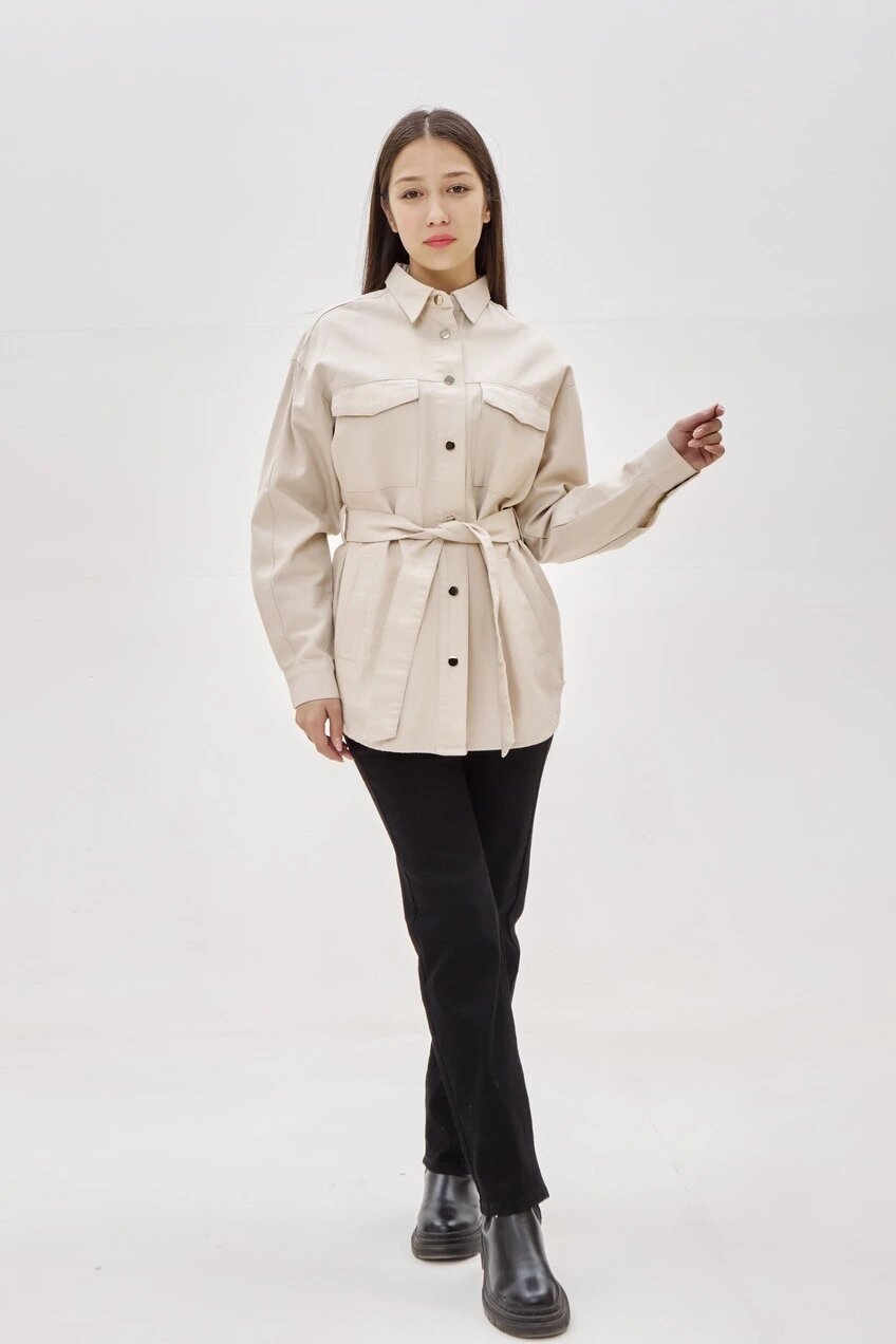 Рубашка с накладными и прорезными карманами, выполненная из 100% натурального хлопка. Модель имеет застежку на блестящие пуговицы, пояс в тон и шлевки под него. В совокупности все детали создают элегантный и стильный вид. Можно сочетать как для офиса, так и для вечера.