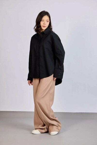 Базовая рубашка свободного кроя с длинными рукавами. Выполнена из натурального воздухопроницаемого и легкого материала, хорошо держит форму и обеспечивает комфорт в течение всего дня.