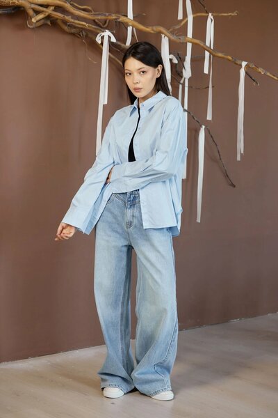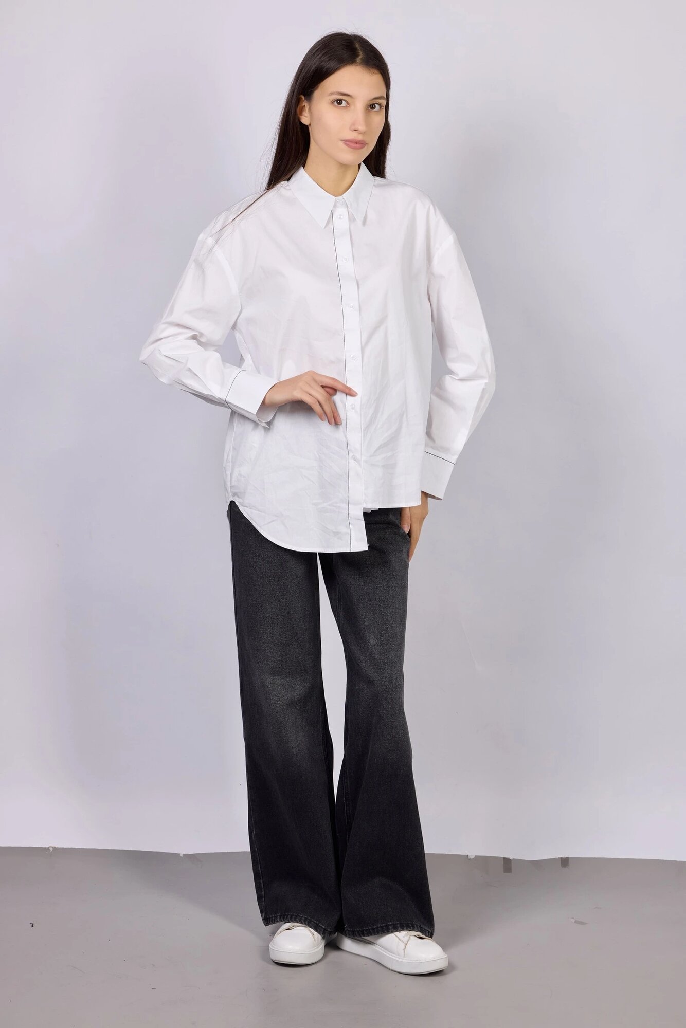 Базовая рубашка оверсайз кроя с длинными рукавами. Выполнена из натурального воздухопроницаемого и легкого материала, хорошо держит форму и обеспечивает комфорт в течение всего дня.