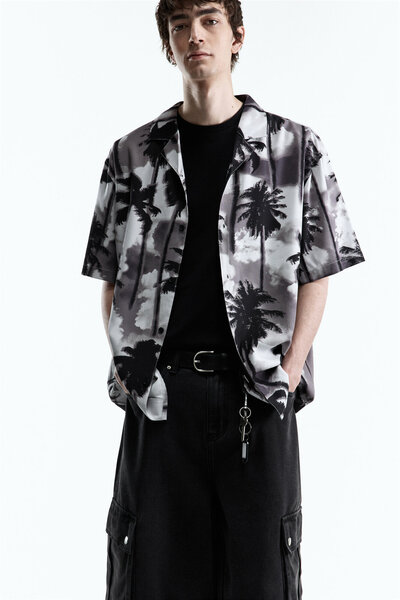- Удлиненная мужская рубашка свободного прямого кроя из легкой, дышащей и очень приятной к телу смесовой ткани на основе вискозы с гладкой текстильной фактурой - Отложной воротник с лацканами и небольшим V-образным вырезом. Застежка на мелкие пуговицы по всей длине. Удлиненные свободные рукава чуть выше локтя с прямыми манжетами и спущенной линией плеча. Прямой нижний край без разрезов - Стильная длинная рубашка из дышащей вискозной ткани для ярких повседневных аутфитов. Бери гавайскую рубашку с собой в отпуск на море, сочетая ее со свободным дышащим низом. Носи ее отдельно или в составе многослойных образов. Используй рубашку в качестве основы для образов на вечеринках у бассейна. Создавай с летней гавайской рубашкой образы на каждый день или по особым летним поводам. Сделай из нее яркий акцент в сдержанных офисных луках, чтобы наполнить трудовые будни флером отпуска - Размер на модели: L