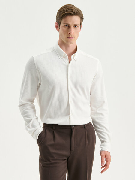 Основная ТКАНЬ-100% хлопок, LC Waikiki Мужская рубашка Slim Fit с длинным рукавами от LC Waikiki — рубашка, созданное для комфортной носки каждый день и аккуратного силуэта. Категория: одежда, обувь и аксессуары / одежда для взрослых / блузы и рубашки / рубашки для взрослых. Ключевые характеристики: Цвет товара для карточки|ecru|, Цвет товара для фильтра|бежевый|, Номер карточки|W5KU07Z8|, Размер в сетке|M|, Размерная сетка|LC Waikiki|, Размер на бирке|M|, Пол|мужской|, Тип продукта|Рубашки|, Размер модели на фото|L|, Воротник|Воротник на пуговицах|. Посадка и крой продуманы так, чтобы вещь выглядела актуально и не сковывала движения: удобно ходить, сидеть, работать и путешествовать. Ткань приятна к телу, а детали отделки рассчитаны на регулярную носку. Сочетайте с кедами и минималистичными аксессуарами для расслабленного настроения или добавьте обувь и верхний слой для более строгого вида. Подходит для офиса без строгого дресс‑кода, прогулок, поездок и встреч. Рекомендации по уходу: следуйте ярлыку, стирайте на деликатном режиме, вывернув изделие наизнанку, используйте мягкие средства и избегайте пересушивания. Так вещь дольше сохранит форму и внешний вид. Товар аккуратно упакован и готов к подарку. Цвет и фактура могут незначительно отличаться в зависимости от настроек экрана и партии материала.