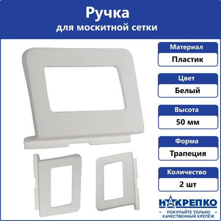 Ручка для москитной сетки Накрепко: функциональность и стиль Прочная и надежная ручка для москитной сетки Накрепко станет незаменимым аксессуаром для вашей мебели. Изготовленная из качественных материалов, она обеспечит долговечность и надежность в использовании. Ручка для москитной сетки Накрепко выполнена в классическом белом цвете, который легко впишется в любой интерьер и не будет выделяться на общем фоне. В комплекте идут две ручки, что позволяет использовать их на двух москитных сетках одновременно. Выбирая ручку для москитной сетки Накрепко, вы получаете качественный и стильный аксессуар для вашей мебели, который прослужит вам долгое время и обеспечит комфортное использование москитной сетки.