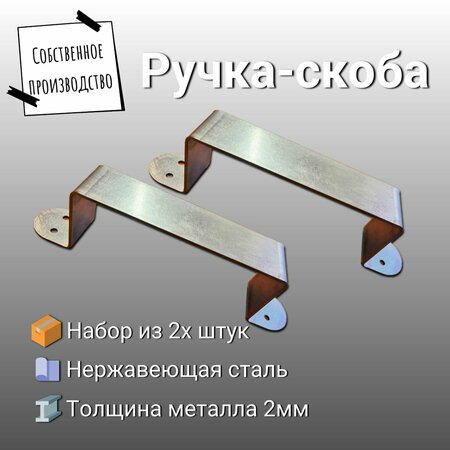 Ручка изготовлена из прочного металла, что обеспечивает надежность и долговечность использования. Дверная ручка изготовлена из нержавеющей стали толщиной 2мм. Вес одной ручки 120 г. Она имеет элегантный дизайн, который подойдет к любому стилю двери или ворот. Установка ручки проста и не требует специальных навыков. Для установки достаточно просверлить отверстия под саморезы или болты, закрепить ручку и затянуть крепежные элементы. Ручка металлическая идеально подойдет для использования на улице, так как она устойчива к воздействию влаги и коррозии. Обеспечьте безопасность и удобство с помощью этой надежной ручки! Комплект из двух ручек для двери. Ручка скоба очень надежная, не ржавеет и прослужит вам долго. Ручка металлическая для установки на двери, калитки, ворота. Дополнительно потребуется приобрести саморезы или болты.