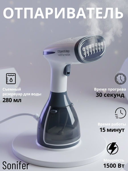 Ручной отпариватель для одежды Sonifer SF-9126 - это мощный и функциональный инструмент для быстрого и эффективного ухода за вашей одеждой. Мощность 1500 Вт обеспечивает быстрое и мощное отпаривание, а максимальное давление пара 5.0 бар и максимальная подача пара 30.0 г/мин позволяют справиться с самыми стойкими складками и заломами. Съемный резервуар для воды объемом 280 мл обеспечивает непрерывную работу до 15 минут, что позволяет вам не прерываться на заправку водой. Время нагрева воды составляет всего 30 секунд, что делает процесс отпаривания еще более быстрым и удобным. Особенности конструкции включают клавиши управления на пистолете и насадки-щетку, которые позволяют вам легко и быстро привести в порядок даже самые труднодоступные места. Корпус отпаривателя выполнен из комбинированных материалов, что обеспечивает его долговечность и надежность. Температура пара составляет 90 градусов, что позволяет эффективно удалять различные виды загрязнений. Отпариватель Sonifer SF-9126 имеет компактные размеры (ширина 10 см, высота 25 см, глубина 10 см) и легкий вес всего 1 кг, что делает его удобным для хранения и транспортировки. В комплекте с отпаривателем идет одна упаковка, цвет товара - серый, что делает его стильным и практичным дополнением к вашему домашнему арсеналу бытовой техники.
