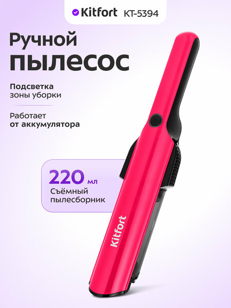 Ваш незаменимый помощник в борьбе с пылью! Компактный и лёгкий ручной пылесос КТ-5394 — идеальное решение для быстрой уборки в любом месте. Он поможет навести порядок в доме, автомобиле, на балконе и в труднодоступных местах. Эффективная работа устройства избавит вас от проблем с пылью и грязью. Всегда готов к работе! Пылесос работает от аккумулятора, позволяя убираться без ограничений. Перед первым использованием зарядите аккумулятор: поставьте пылесос на базу и подключите блок питания. Дождитесь, пока индикатор не загорится зеленым. Зарядка занимает около 5 часов. Уборка без границ У пылесоса КТ-5394 имеется встроенная подсветка. Благодаря ей вы сможете более тщательно и эффективно очищать поверхности, не напрягая зрение. Это особенно важно при уборке в труднодоступных местах, например, под мебелью или в углах комнаты. Удобные настройки для идеального результата Ручной пылесос предлагает два уровня мощности. Цвет индикатора указывает на выбранный уровень мощности: розовый означает низкую мощность, синий — высокую. Время работы на низкой мощности составляет 12 минут, на высокой — 20 минут. Чистота без усилий Три насадки разной длины позволяют легко очищать большие и труднодоступные поверхности. Ворсовая щётка подходит для мебели, ковриков и сбора мелкого мусора с неровных поверхностей. В комплект входит держатель для насадок. Эффективная защита от пыли Пылесос оснащён эффективной системой фильтрации. Пылесборник легко открывается и снимается с моторного блока. Внутри находятся нера-фильтр и фильтр грубой очистки, который защищает нера-фильтр, сохраняя его эффективность даже при регулярной чистке. Ваш помощник на долгие годы! Ручной пылесос КТ-5394 оснащён бесщёточным электродвигателем BLDC (Brushless DC Motor), который отличается долгим сроком службы, высокой надежностью без скользящих элементов, не требует частого обслуживания и обладает высокой перегрузочной способностью.