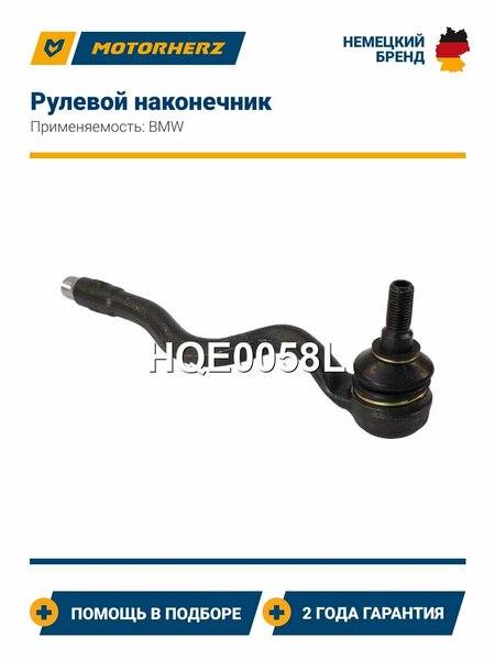 Рулевой наконечник BMW 3 E46 / Z4 (БМВ), левый от немецкого производителя автомобильных запчастей. Компания "Вольтаж" (ООО "АТМ") является официальным представителем и продавцом брендов Motorherz, Krauf, Zaufer, Delon, UTM на территории Российской Федерации. Подходит для автомобилей: BMW 3 (E46) 1997-2007; BMW Z4 2003-2009