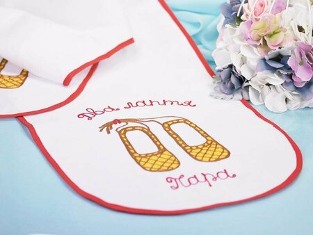Рушник свадебный "Два лаптя - пара" из 100% льна - это изысканное и стильное украшение для вашего свадебного банкета с долей доброго юмора. Изготовленный из качественного льна с тамбурной вышивкой красным цветом, он обеспечивает долговечность и прочность, что делает его незаменимым аксессуаром для свадебного торжества. Рушник выполнен в классическом белом цвете, вышивка в красном цвете, который легко сочетается с любым нарядом и декором. Размер рушника составляет 150 см в длину и 30 см в ширину, что позволяет использовать его для встречи молодоженов с караваем, а также для оформления столов. Выбирая рушник свадебный "Два лаптя - пара", вы получаете не только стильный аксессуар для вашего торжества, но и гарантию качества и долговечности