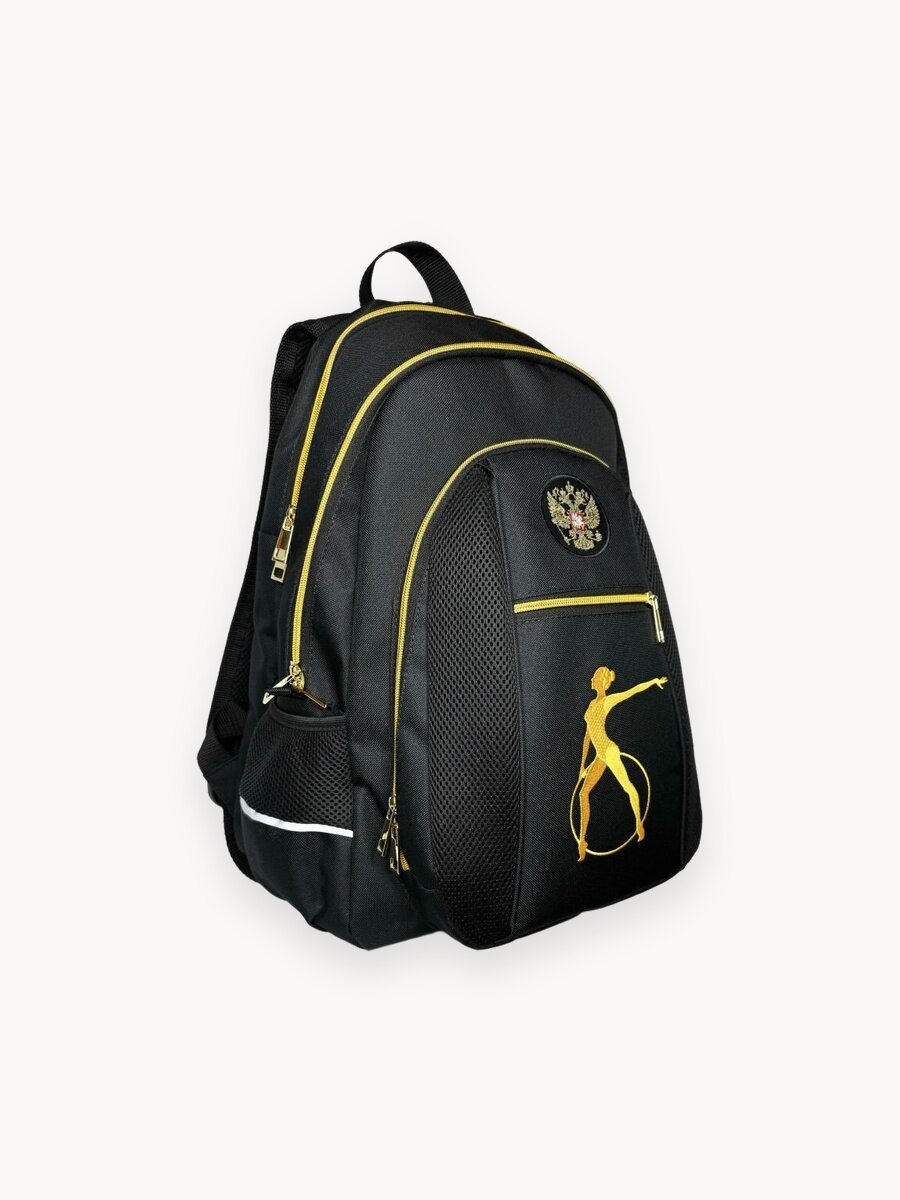 Рюкзак для девочки Чемпион отлично подойдет гимнасткам ростом от 134 см. Данный рюкзак для художественной гимнастики очень вместительный, что позволяет комфортно расположить одежду (костюм, топ или майку и шорты), аксессуары и другие необходимые предметы для тренировок и выступлений. А вышивка символики любимого вида спорта станет дополнительной мотивацией для юной спортсменки. Он выполнен в спортивном стиле с гербом России и имеет синий цвет, добавляющий яркости и энергии. Одним из главных преимуществ является наличие специальных карманов и отверстий для гимнастических аксессуаров. У него есть отделение с карманами для булав (на 45 см) и специальный отдел для гимнастической палочки. В основной отдел можно поместить мяч размером 18,5 см, скакалку, ленту и резину для растяжки. Для бутылки с водой есть боковые карманы. Для комфорта уплотненная спинка, мягкие широкие лямки, которые регулируются по росту спортсменки, светоотражающие полосы для безопасности в темное время суток. Изготовлен из износостойких материалов высокого класса с профессиональной вышивкой. Размеры изделия: высота 47 см, ширина 35 см, глубина 30 см. Рюкзак подходит для школы и спортивных секций, а также идеален для сборов. Это всегда удачный детский подарок на день рождения, 8 марта или Новый год. МариСпорт - это Торговая марка для художественной гимнастики, в нашем ассортименте всегда в наличии удобная и комфортная одежда, функциональные и красивые рюкзаки, полупальцы, а также у нас есть большой выбор командной экипировки, спортивной детской формы В MariSport вы можете собрать идеальный комплект одежды, подходящий для тренировок в спортзале и для участия в командных соревнованиях.