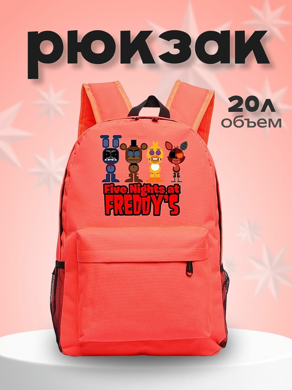 Рюкзак фнаф (Five Nights at Freddys), внутри рюкзака есть несколько отделений. Подойдет для школы, университета и повседневного ношения. Особенности: дышащий материал, снижает нагрузку на плечи и спину. Объем: 35 л. Маркировка: Ichi. Размер: 44*30*15 см. Цвет: Розовый