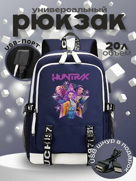 Рюкзак HuntriX (K-Pop demon hunters) синий с USB-портом №2