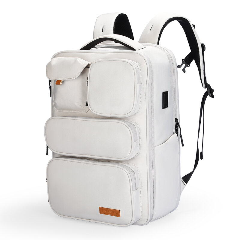 Стильный новый рюкзак от бренда Mark Ryden цвета слоновой кости предназначен как для ежедневного использования в городе, так и для дальних поездок. Рюкзак достаточно вместителен, чтобы брать с собой все необходимое, отправляясь на работу или на учебу в универ, а также в короткие или длительные путешествия и командировки (в дополнение к багажу). При этом он имеет габариты, позволяющие спокойно пользоваться при необходимости общественным городским транспортом и брать его в ручную кладь самолета большинства авиакомпаний, включая лоукостеры. В рюкзак помещается ноутбук с диагональю 17,3", большой планшет 12,9". Благодаря продуманной системе внутренних и наружных отсеков и карманов, вы сможете аккуратно разложить ваши вещи, обеспечив к ним оптимальный доступ в зависимости от предназначения (есть карманы для мелочей, которые должны быть под рукой, и скрытые отсеки для ценностей). Впрочем, последнее, самое объёмное отделение, также имеет продуманный доступ и может открываться на 180 градусов. Внутри него есть свой органайзер с карманами. Этот стильный рюкзак сшит из влагонепроницаемого прочного Оксфорд, на нем стоит надежная японская фурнитура YKK. Плечевые лямки с мягкой мембраной. Для вашего максимального комфорта в дороге также предусмотрены наружный USB-порт (внутри закрытого бэкпека оставляете паувебанк и через порт можно заряжать смартфон в пути), а также лямка на ручку чемодана. Материал: PU coated oxford