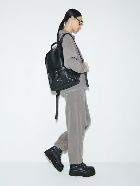 Городской рюкзак, который говорит за вас. Смелый, дерзкий и ультрамодный — он точно не останется без внимания. Металлические кольца, будто пирсинг на коже, добавляют характер в каждый образ и задают тот самый вайб Y2K, к которому хочется возвращаться снова и снова. Это не просто рюкзак — это манифест: для тех, кто живёт на скорости мегаполиса для тех, кто хочет добавить бунтарской эстетики даже в самый базовый аутфит для тех, кто сочетает кэжуал с гранжем, а комфорт — с выразительным стилем Плюс баллы за практичность: Вместительное основное отделение легко вмещает ноутбук, косметику, документы или смену обуви. Удобная спинка и регулируемые лямки — чтобы носить с утра до вечера без усталости. Наружный карман на молнии — быстрый доступ к важному. Материал с эффектом матовой кожи устойчив к износу и погоде. Носите с худи и широкими джинсами, с платьем-комбинацией и кожаной курткой, с чёрным тотал-луком или серебряными аксессуарами — он работает везде. Идеальный спутник на каждый день, чтобы быть в центре внимания без лишних слов.