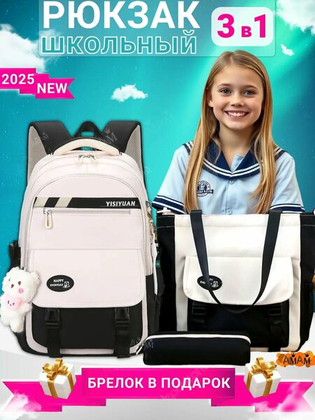 Представляем практичный школьный набор 3 в 1, который станет идеальным спутником вашего ребенка в мир знаний! Этот стильный черный ранец с двумя отделениями идеально подходит для учеников всех классов. Вместительный рюкзак объемом 20 литров с легкостью вместит все школьные принадлежности, а удобные лямки обеспечат комфорт при носке. В комплект входят не только рюкзак - настоящий набор для успешного учебного года! Мягкая спинка рюкзака позаботится о правильной осанке девочек, а влагозащитный материал защитит содержимое от неожиданного дождя. С таким набором ваш ребенок будет чувствовать себя уверенно и стильно, а яркие брелоки и значки добавят индивидуальности его образу. мягкий рюкзак комплект в школу для девочки 2, 3, 4 класс