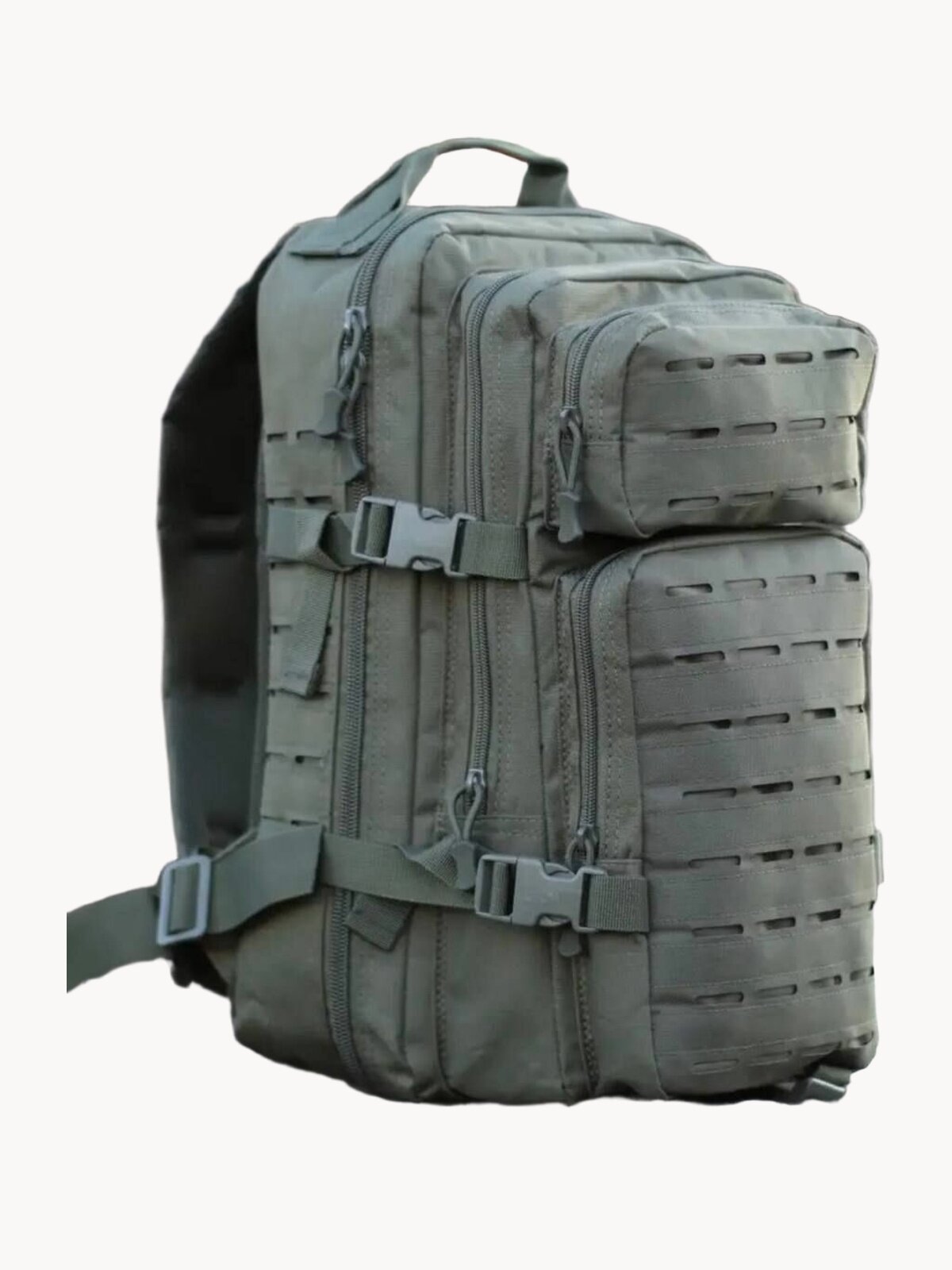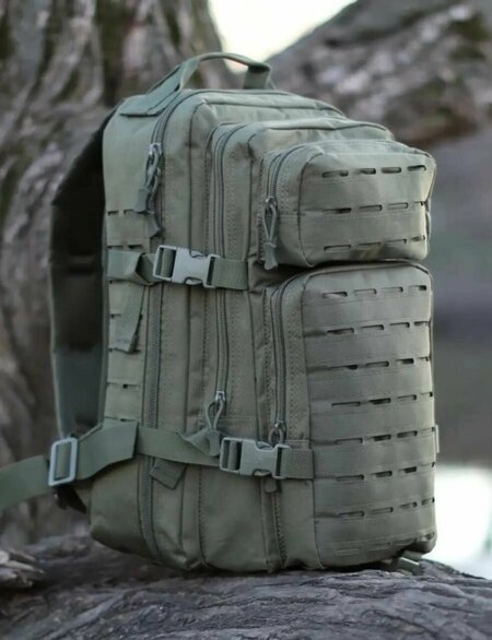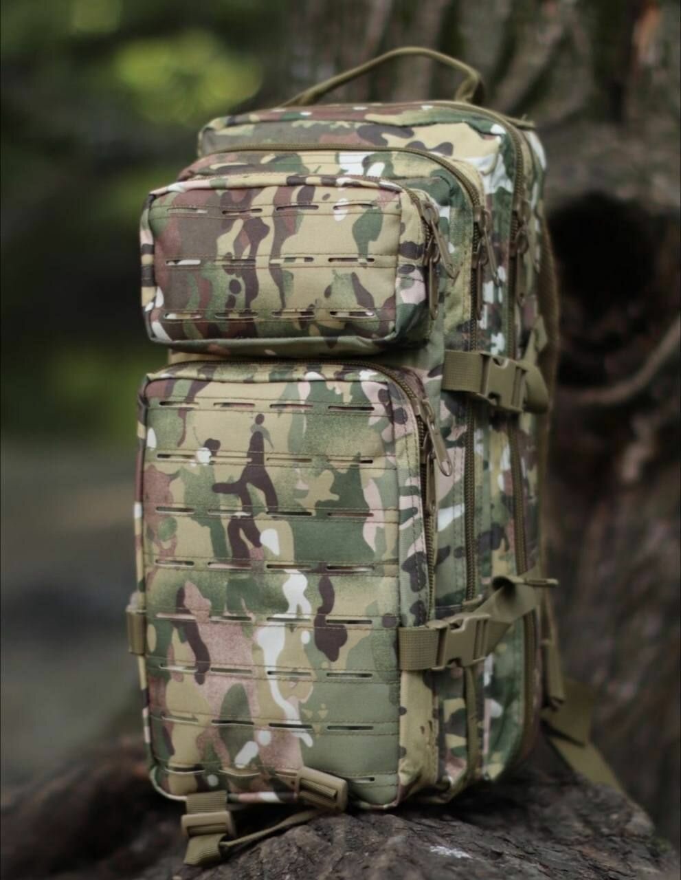 Рюкзак выполнен из плотного водостойкого материала Оксфорд 900D с прорезиненным слоем. Основное вместительное отделение с двумя карманами и среднее с органайзером. Спереди рюкзака одно небольшое отделение и одно среднее с органайзером. Все отделения фиксируются V-образной стропой на карабине. Благодаря ремням стяжкам снизу и по бокам возможно утянуть объем рюкзака. Поясной ремень и грудная стяжка улучшает баланс и распределения веса. Впереди и с боков рюкзак прошит стропами MOLLE/PALAS для крепления дополнительных подсумков под патроны, ножи, аптечку, термос и прочие тактические принадлежности. Сверху рюкзака крепкая ручка для удобной переноски в руках. Полужесткая спинка с вентилируемой мягкой накладкой. На спинке рюкзака имеется карман на липучке для питьевого гидратора. Лямки рюкзака регулируемые, Х- образной формы, наполнены мягкими вентилируемыми вставками Airmesh. Тактический рюкзак практичный аксессуар с повышенной износостойкостью. Является универсальной моделью и в городе, и походе. Многофункционален в использовании, удобен в ношении.