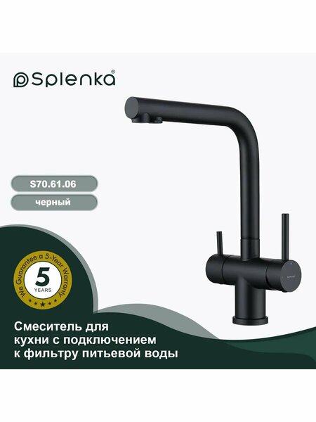 Смеситель для кухни под фильтр S70.61.06 - стильная модель в современном стиле – объединение классических конструкционных решений и вместе с тем необычного и смелого оформления. Такая сантехника идеально подходит для тех людей, кто постоянно стремится шагать в ногу со временем. Кран изготовлен из нержавеющей стали – долговечного, прочного, надежного материала. Смеситель имеет высококачественное покрытие. Излив имеет возможности вращения, что напрямую положительно влияет на практичность. Испанский керамический картридж Sedal эффективно смешивает потоки холодной и горячей воды, понижает шум подачи воды. Картридж имеет диаметр 35 мм - высокая пропускная способность! Переключение на фильтр осуществляется долговечным керамическим переключателем - качественной керамической кран-буксой. Аэратор в смесителе позволяет обеспечить равномерную подачу воды и ее смягчение. Специальная сетка отфильтровывает разнообразные примеси. Кран монтируется при помощи гайки, нижняя часть корпуса вставляется в отверстие в мойке и с обратной стороны затягивается гайкой для фиксации. Установка данной модели осуществляется на одно отверстие для смесителя. В комплекте идет полный набор для установки: гибкая подводка для воды, переходник для соединения со стационарной системой питьевой воды, крепёжный комплект • Материал - нержавеющая сталь SUS304 • Цвет - черный • Керамический картридж 35мм - S500.358 • Переключатель с керамическими пластинами (угол поворота – 90°) - S501.524 • Аэратор - S540.721.06 • Аэратор для фильтрованной воды - S540.724.06 • Переходник для соединения со стационарной системой питьевой воды - S599.01 • Гибкая подводка 50см - M10*1-Г1/2 • Крепежная гайка - S599.02