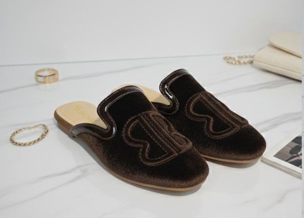 Элегантные бархатные мюли — изящество и комфорт для вас! Представляем вашему вниманию стильную обувь, которая идеально подойдет как для повседневных образов, так и для торжественных выходов. Характеристики товара: Производство: Китай (Высокое экспортное качество). Размерная сетка: Идут размер в размер (полномерные), идеально садятся по ноге. Цвета: Специальные гелевые оттенки — глубокие, насыщенные и с благородным блеском. Эффектно переливаются при любом освещении. Материал: Мягкий качественный бархат (вельвет). Вышитый логотип придает обуви дорогой и эксклюзивный вид. Комфорт: Мягкая стелька обеспечивает удобство в течение всего дня, ноги не устают. Почему стоит выбрать именно эту модель? Эти мюли выполнены в трендовом стиле "Quiet Luxury" (тихая роскошь). Они гармонично сочетаются как с брюками, так и с классическими платьями, подчеркивая ваш вкус.