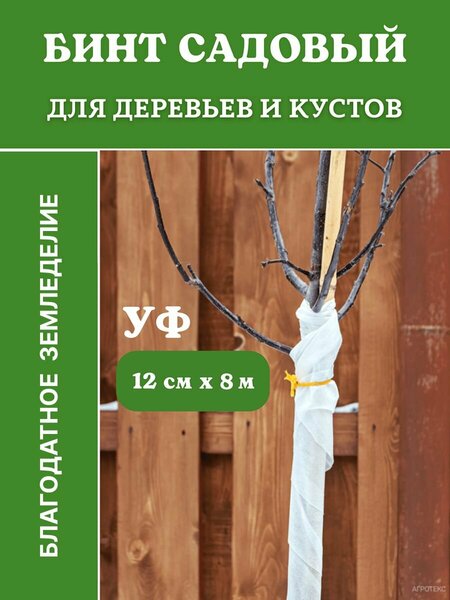 Садовый бинт для деревьев с УФ стабилизатором 12 см х 8 м белый Благодатное земледелие