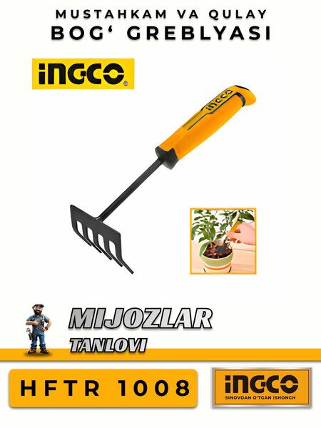 Садовые грабли INGCO HGR1008 – Компактный и прочный помощник! Идеальны для ухода за клумбами, рыхления и удаления сорняков. ✅ Преимущества: Прочные зубья из стали — легко входят в землю ✋ Удобная нескользящая ручка — комфорт даже при длительной работе Размер: 300×100 мм Подходит для работы вокруг рассады, кустов, цветов Лёгкие, прочные, компактные Размер упаковки: 31 × 8 × 5 см Модель: HGR1008 Практичный инструмент, который должен быть в каждом садовом наборе! Садовые грабли INGCO HFTR1008 – Компактные. Прочные. Удобные! Идеальны для сбора листьев, рыхления и выравнивания почвы! ✅ Преимущества: Цельнометаллический корпус – высокая прочность и долговечность Углеродистая сталь – не гнется и не ломается ✋ Уникальная запатентованная ручка – удобно держать, не скользит Размер: 270 × 82 мм ️ Толщина зубьев: 2 мм | Диаметр стержня: 8 мм Отлично подходит для клумб, теплиц, небольших участков Модель: HFTR1008 Мини-грабли, которые упростят любую садовую задачу!