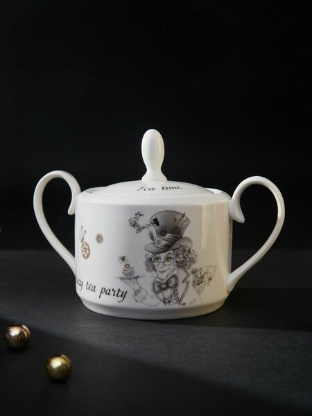 Сахарница Lefard "Wonderland", фарфоровая, с крышкой, с рисунком, 350 мл — это элегантный аксессуар для вашего стола, вдохновленный известной сказкой Льюиса Кэрролла. Изготовленная из высококачественного фарфора, эта сахарница станет стильным дополнением сервировки и добавит уют и роскошь в ваш дом. Сахарница выполнена на белоснежном фарфоре с толщиной стенок 1.5-2 мм, что обеспечивает прочность и долговечность, а также позволяет использовать её в микроволновой печи. Она декорирована чёрно-серыми элементами в сочетании с матовым золотом. Объем сахарницы составляет 350 мл, что достаточно для удовлетворения потребностей в сахаре во время чаепития. Её размеры включают диаметр 10 см, общую длину 17 см и высоту 12 см. Функциональность данной сахарницы заключается в её удобстве хранения и использования сахара, что делает ежедневные чаепития более особенными. Великолепная деколь с мотивами сказки придает изделию уникальную эстетическую ценность, превращая каждое чаепитие в настоящую церемонию. Сахарница идеально подходит для как повседневного использования, так и в качестве элемента сервировки на торжественном мероприятии. Эта изысканная сахарница поставляется в брендированном картонном контейнере с повторяющимся декором, что подчеркивает её уникальность и делает прекрасным подарком. Она станет отличным выбором для любителей утонченных аксессуаров и поклонников сказки Кэрролла любого возраста.