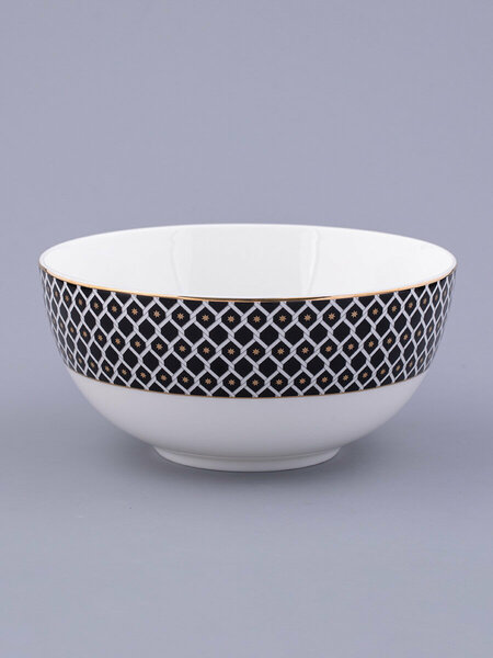 Салатник «Неро» – стильный элемент вашей сервировки. С внешней стороны салатник украшает замысловатый орнамент на черном фоне. Черный цвет, одновременно лаконичный и выразительный, является синонимом элегантности и утонченного вкуса. «Неро» демонстрирует восхитительный диалог черного цвета с белоснежным фарфором. Благодаря такому контрасту черный кажется менее консервативным, а костяной фарфор приобретает большую воздушность. Салатник «Неро» можно использовать самостоятельно, вместе с другими предметами этой коллекции или с изделиями разных цветов из серии «Идиллия». Кроме того, универсальность черного цвета позволяет сочетать его с любым фарфором без рисунка либо дополненным золотыми акцентами.