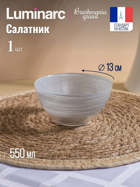 Салатник LUMINARC Brush Mania Гранит - это стильный и функциональный аксессуар для вашего стола. Изготовленный из высококачественного стекла, он обеспечивает долговечность и надежность использования. Салатник имеет круглую форму и диаметр 13 см, что делает его удобным для подачи различных салатов и закусок. Элегантный и современный дизайн в сером цвете "гранит" подойдет для любого интерьера и станет отличным дополнением к праздничной сервировке. Одной из особенностей салатника является его использование в микроволновой печи. Это позволяет быстро и удобно разогреть пищу, не опасаясь повредить посуду. Еще одним преимуществом является возможность мыть салатник в посудомоечной машине. Это значительно упрощает процесс ухода за посудой и экономит ваше время. Салатник LUMINARC Brush Mania Гранит - это не только стильный аксессуар, но и практичный выбор для вашей кухни.