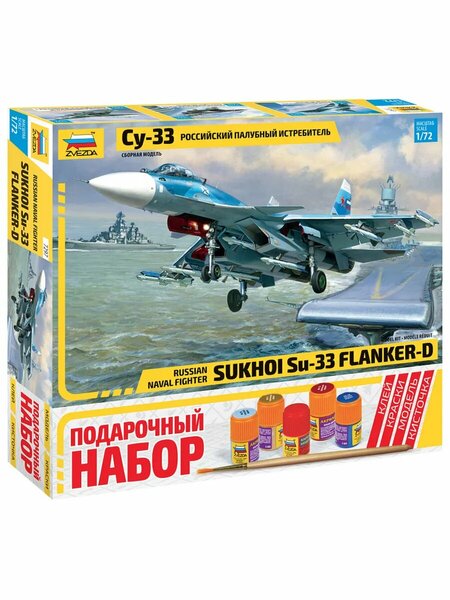 Масштаб 1:72 Детали х 247 Размер, см 31.3 Сборная модель - Российский палубный истребитель Су-33. Историческая справка: Су-33 является 4-м поколением истребителей, разработанных и изготовленных в КБ им. Сухого под руководством главного конструктора М. П. Симонова. Этот палубный истребитель не только сохранил все достоинства прототипа (Су-27), но и получил ряд преимуществ, связанных с базированием на корабле. Увеличена стойкость конструкции к коррозии, усилено шасси, улучшена защита всех бортовых систем от перепада температур. Су-33 оснащен складными крыльями и складными стабилизаторами для компактного размещения на авианосце, а также гаком, предназначенного для посадочных операций в море. Все эти особенности корабельного Су-33 мы реализовали в новой модели. Мы предлагаем вам установку консолей и частей стабилизатора крыльев в сложенном и расправленном виде без ущерба копийности. Идеальная геометрия и подробная деталировка сделают сборку модели не только увлекательным, но и познавательным процессом. В комплектацию данного набора входит: сборная модель клей набор красок для покраски кисточка Подходит для подарка как начинающему моделисту, так и моделисту с опытом.