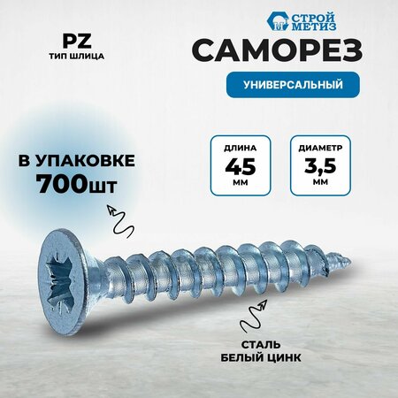 Универсальные саморезы обладают рядом уникальных характеристик, делающих их незаменимыми в строительстве и монтажных работах. Одной из особенностей является острый наконечник, который обеспечивает легкость и быстроту ввода в любой материал, снижает усилия при закручивании, и уменьшает вероятность повреждения поверхностей. Благодаря использованию шлица Pozidriv PZ, эти саморезы обеспечивают увеличенный крутящий момент. Это значит, что инструмент гораздо реже соскальзывает, увеличивая эффективность работы и продлевая срок службы инструмента. В то же время, улучшенная стабильность и удержание инструмента приводят к уменьшению риска повреждения рабочей поверхности и самого инструмента. Покрытие цинком - еще одна особенность этих саморезов. Обеспечивает повышенную коррозионную стойкость, что особенно важно при использовании в условиях повышенной влажности или агрессивной среды. Это покрытие также придает саморезам привлекательный внешний вид, делая их не только функциональными, но и эстетически приятными. Цвет покрытия - белый цинк, что делает эти саморезы наиболее подходящими для работ, где требуется скрытый монтаж. Потайная форма головки позволяет максимально скрыть крепежный элемент, сохраняя эстетику изделия. Такая форма головки минимизирует возможность случайного зацепа за крепеж, обеспечивая безопасность использования.