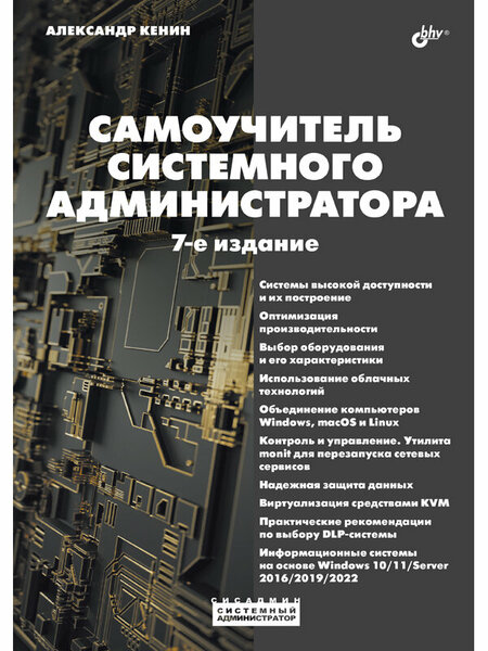 Изложены основные задачи системного администрирования, описаны базовые протоколы, даны рекомендации по выбору оборудования и проведению ежедневных рутинных операций. Подробно раскрыты технологии, используемые при построении информационных систем, описаны средства мониторинга и обслуживания как малых, так и распределённых сетей. Рассмотрены методы централизованного управления, основы создания безопасной среды. Даны рекомендации по поиску неисправностей, обеспечению защиты данных. Параллельно рассмотрены решения на основе операционных систем Windows и Linux с использованием как проприетарных, так и открытых технологий. Книга написана на основе многолетнего опыта разработки и практического администрирования информационных систем. В 7-м издании весь материал актуализирован для Windows Server 2022 (русская версия), дополнительно рассмотрены файрвол ufw, утилита monit, виртуализация средствами KVM. Для начинающих системных администраторов