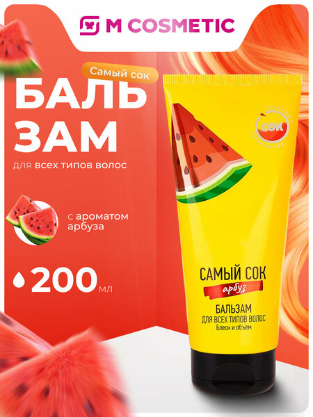 Самый СОК Бальзам для всех типов волос Блеск и Объем с натуральным соком арбуза, 200 мл