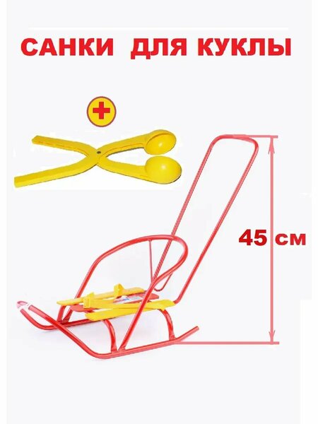 Санки для куклы и снежколеп в комплекте. И снежколеп, и санки сделаны прочно, сделаны в России для русской зимы. Снежколеп длиной 36см, снежок 7 см в диаметре. Цвет снежколепа может быть любой. Цвет саночек алый, то есть ярко красный. Кукольные санки с толкателем практично, удобно, красиво. Бесподобно))))) Санки кукольные сделаны из металла с деревянным сидением Санки для кукол имеют съемный прямоугольный толкатель. Высота с толкателем 45 см. Часто такие санки покупают чтобы использовать их как толокар на улице в зимнее время. Поэтому иногда берут и мальчикам. Саночки подойдут детишкам с 1 года и . пока не пропадет интерес, до 7 лет спокойно. Санки можно возить как толкая за толкатель, так и привязав веревочку. Очень удобно. Размер сидения для куклы достаточно большой. Санки подойдут и куклам Беби Бон, и Бэби Аннабель. Можно катать любые другие куклы и игрушки, и Барби , и "любимый" танк. Супер санки! Отличный аксессуар для кукол, дополнение к таким аксессуарам как: машина для Барби, коляска для куклы, кроватка для куклы или волшебная карета для принцессы куколки. Дети любят такие игрушки как каталка детская, тележка детская, тачка детская, коляска для куклы, машинка на веревочке - все это игрушки, которые надо катать. Видимо в детишки обожают что-то катать, также как и качаться на качелях - движение- это неотъемлемая часть детских игр. Качели, каталка детская, качалка детская видимо по этому так популярны. Санки для куклы - это новинка на рынке детских зимних игрушек , так же как и снежколпеп. Это отличный подарок на Новый год и Рождетсво. Кукольные саночки под новогодней елочкой так здороо смотрятся. Это отличный подарок для девочки на день рождения.
