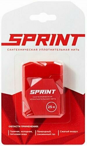 Нить SPRINT 25 м - сантехническая уплотнительная нить для герметизации резьбовых соединений. Имеет плоское сечение, более 280 микронитей и улучшенную пропитку, разработанную Сантехмастер Групп. Подходит для срочного ремонта и монтажа. Применяется для резьб из любого материала. Время герметизации: мгновенно, Температура монтажа: без ограничений, Рабочая температура: от - 60 до + 120°C, Демонтаж: облегчённый. Области применения:- природный газ- сжиженный газ- холодная и горячая вода- питьевая вода- сжатый воздух. Преимущества:-Безопасна для питьевой воды, -Технологична и проста в применении, -В 2 – 3 раза доступнее зарубежных аналогов, -Уплотняет загрязненные и частично разрушенные резьбы, -Мгновенно герметизирует, -Имеет всю необходимую разрешительную документацию