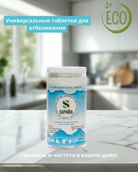 Кислородные таблетки-отбеливатель SAPHIRA, для цветных тканей, 18 шт