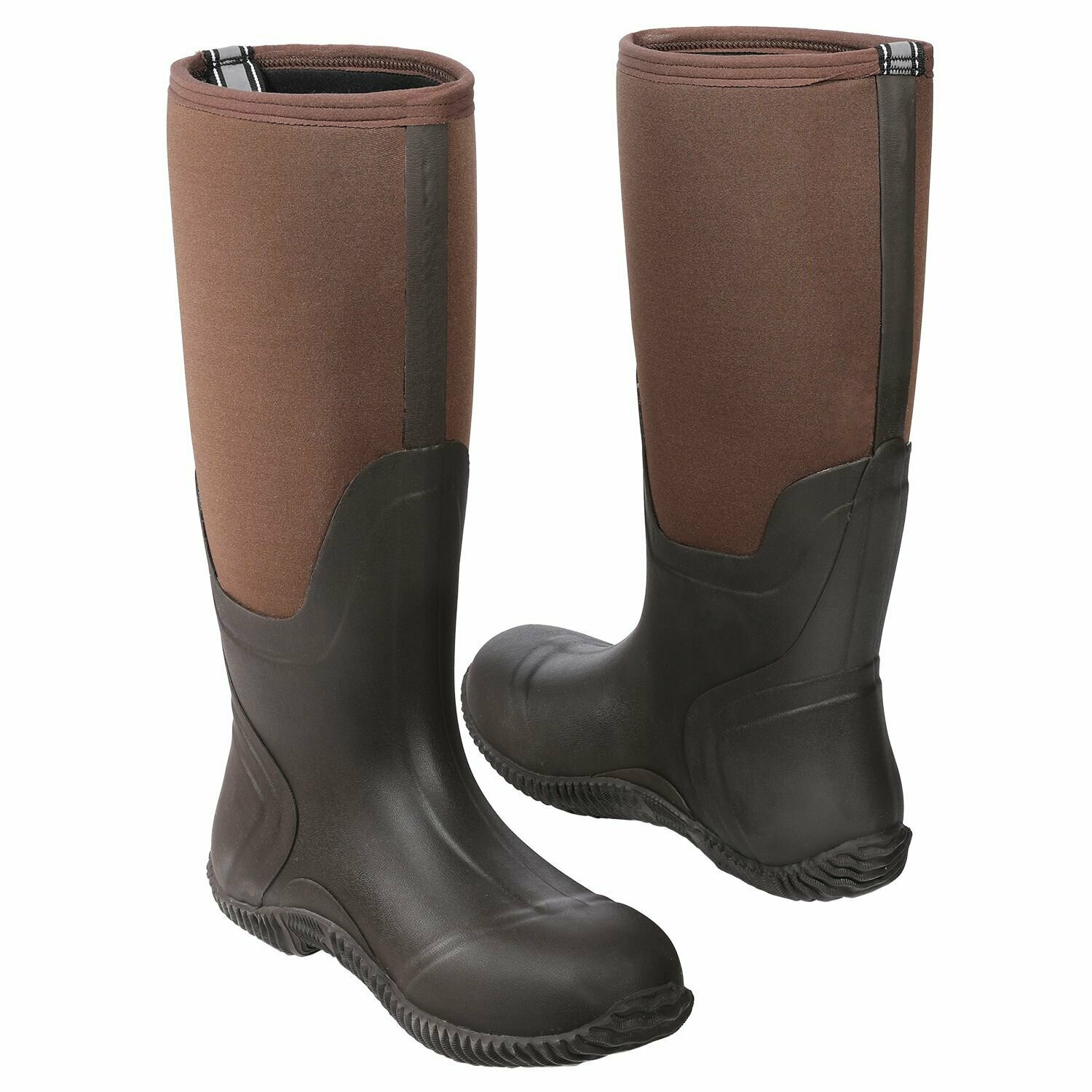 Когда дело доходит до работы или жизни на открытом воздухе, у HISEA есть пара сапог, тщательно разработанных для самых разных целей. От сельского хозяйства, садоводства, охоты, рыбалки до повседневного использования, сапоги HISEA удовлетворят ваши потребности. Нравится работать на приусадебном участке, ноги в сапогах HISEA останутся сухими и чистыми. Любите охотиться на уток по рекам, болотам или топям, но устали от неудобных ботинок? Сапоги HISEA обеспечат поддержку свода стопы и устранят болезненные ощущения. • Сохраняйте сухость и тепло - неопреновые сапоги толщиной 7 мм обеспечивают гибкость и амортизацию, 100% водонепроницаемость и сохранение тепла. В этих прочных резиновых сапогах ноги остаются сухими и теплыми во время рыбалки, работы, охоты, кемпинга, выгула собак или игры на свежем воздухе. • Дышащая подкладка. Дышащая подкладка H-Airmesh позволяет воздуху проходить через сапоги, благодаря чему ваши ноги намного суше, чем в обычных ботинках. Воздушная сетка - это то, что сохраняет высококачественные сапоги прохладными и сухими при интенсивном использовании. Комфортная температура от -10 °C до +30 °C. Он подходит для круглогодичного использования. • Удобный дизайн - полностью герметичная резиновая оболочка поднимается выше лодыжки. Трехслойные усиленные области ахиллова сухожилия, пятки и носка поддерживают дополнительную защиту от опасностей. • Anti-Slip - гибкая и прочная формованная подошва смягчает каждый шаг для комфорта в течение всего дня, обеспечивает превосходную устойчивость и надежное сцепление, противоскользящая и самоочищающаяся. Гибкость, позволяющая свернуть высокий голенище вниз, чтобы сделать его более прохладным при повышении температуры.