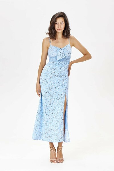 Сарафан миди на тонких бретелях с эластичной гофрированной вставкой под лифом. Легкая женственная модель, что идеально подойдет на отдых или жаркую летнюю прогулку.