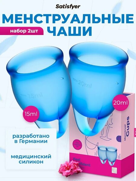 Мы разработали менструальную чашу, которая принимает форму вашего тела! Satisfyer Menstrual Cup вмещает в 4-6 раз больше, чем тампон, без каких-либо побочных эффектов. Использование тампонов вызывает сухость и способствуют микроразрывам, это делает вас более восприимчивыми к инфекциям. Satisfyer Menstrual Cup собирает кровь, а не поглощает ее, чаша практически не ощущается внутри, она приятна вашей коже и помогает вам сохранять отличное самочувствие. Satisfyer Menstrual Cup разработаны в Германии, и конечно, отвечают самым высоким стандартам качества. Многоразовая менструальная чаша разработана для настоящего комфорта женщин. Благодаря мягкому силикону отлично подходит для удобной посадки и защищает до 12 часов! После извлечения достаточно просто промыть обычной водой и можно использовать повторно. С чашей можно посещать бассейн, сауну, ходить в любимый спорт зал, стоять на голове, прыгать, ползать и наклоняться! С чашей можно носить любимое красивое бельё. С чашей можно спать без одежды в любой позе. Попробуйте! Больше нет "критических" дней и каких либо ограничений! В комплекте идут 2 чаши объёмом 15 и 20 мл.