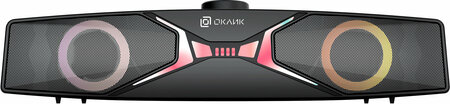 Саундбар Оклик OK-502S передает чистый, мощный и объемный звук. Он подходит для подключения к любым источникам, а яркая подсветка поможет полностью погрузиться в атмосферу звука. Высокое качество звука Пара динамиков мощностью по 3 Вт обеспечивают достаточную громкость для жилых и офисных помещений. Даже на максимальной громкости звук не искажается. Компактные размеры Оклик OK-502S имеет компактные размеры 330х58х75 мм, которые дают возможность удобно разместить саундбар рядом с телевизором или монитором. Легкий вес позволяет брать его с собой в поездки и легко перемещать в нужное место. Совместимость с любыми источниками Саундбар поддерживает подключение к различным источникам звука благодаря 3.5 мм аудиовыходу и поддержке беспроводных технологий. Устройство предназначено для работы с разными устройствами: телевизорами, мониторами, смартфонами, планшетами и другими источниками аудио. В случае использования со смартфоном или планшетом, продукт может быть превращен в мощную портативную акустическую систему. Акустическая система: Стандарт: 2.0 Суммарная выходная мощность: 6 Вт Динамики, тип 1: 2 х 50 мм Диапазон частот: 300 Гц - 20 КГц Особенности: Поддержка Bluetooth Регулировка громкости и RGB-подсветки Подключение 3,5 мм Bluetooth Питание от порта USB типа A Энергопотребление: Потребляемая мощность в режиме работы: 5 Вт Физические характеристики: Материал корпуса: пластик Цвет: черный Размеры: 330 х 58 х 75 мм