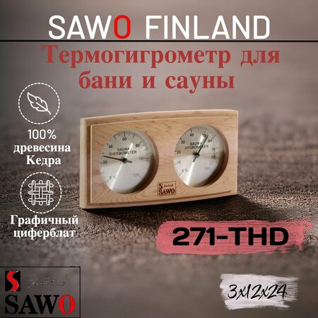 Термогигрометр 271-THD от компании Sawo имеет классическую прямоугольную форму. В широкой рамке из древесины кедра находится два круглых окошка. Под стеклом каждого окошка расположен графичный циферблат. Один из них - это гигрометр, который с точностью измерит уровень влажности в парной, другой - термометр, который сообщит о температуре воздуха. Данный прибор прекрасно подойдёт для использования в любом парильном помещении. В нашем интернет-магазине представлен широкий ассортимент измерительных приборов в корпусах из разных видов древесины. Вы можете купить по привлекательной цене модель 271-THD или присмотреться к другим вариантам. Качественные банные процедуры требуют соблюдения ряда правил. Чтобы проведённое в парной время оказало благоприятный эффект на здоровье и самочувствие, необходимо тщательно соблюдать температурный режим парения и режим влажности. Так например, если вы отдыхаете в условиях классической финской сауны, влажность воздуха не должна превышать 10-15% при температуре до 120 градусов. Русская баня - это температура воздуха 60-90 градусов и влажность в диапазоне от 45% до 65%. Хамам отличается густым паром, создающим 90-100% влажности и температурой воздуха до 45 градусов. Именно такие условия считаются оптимальными.